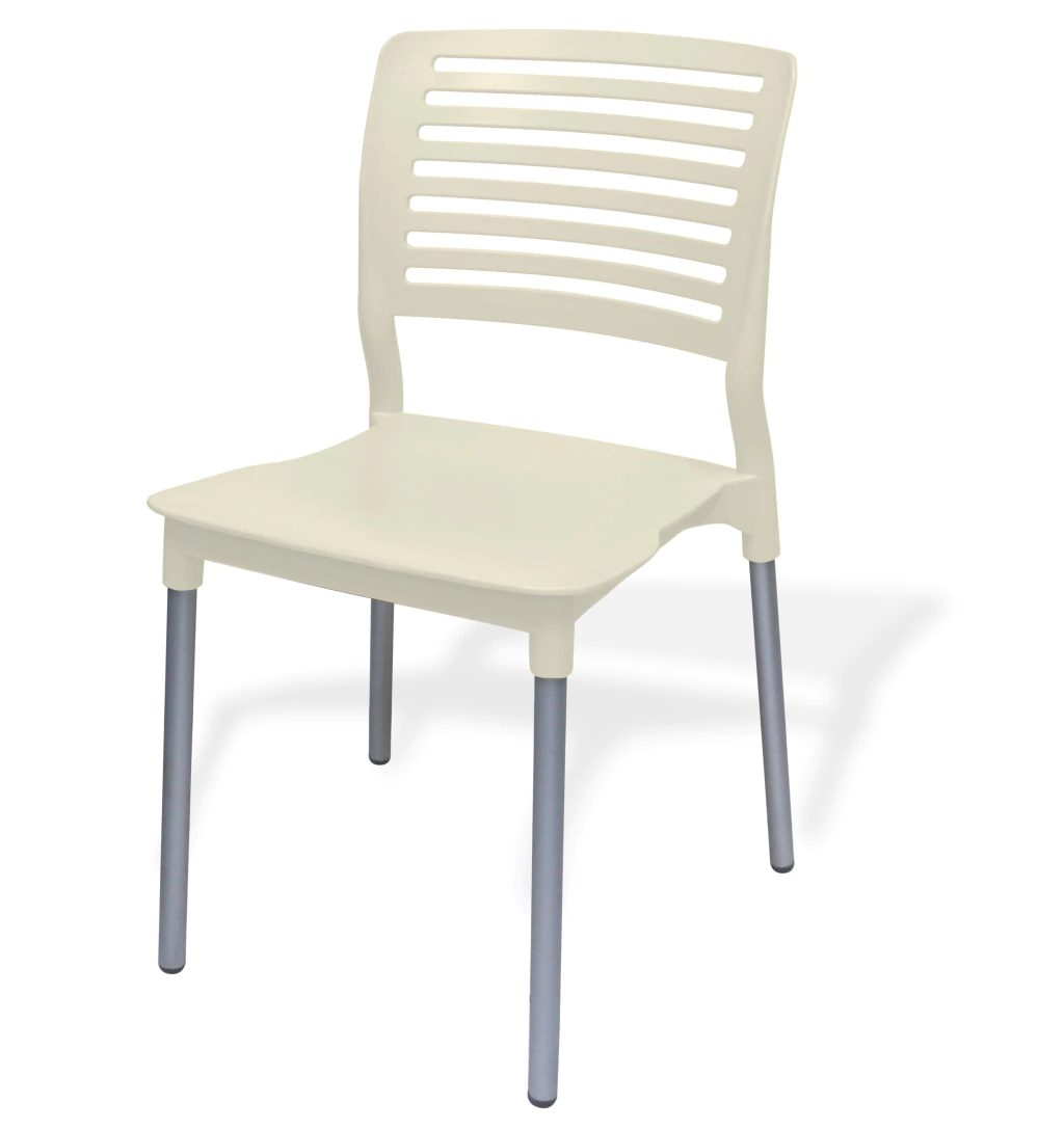 Sillas: Asiento inyectado en polipropileno 100% virgen, patas de aluminio.