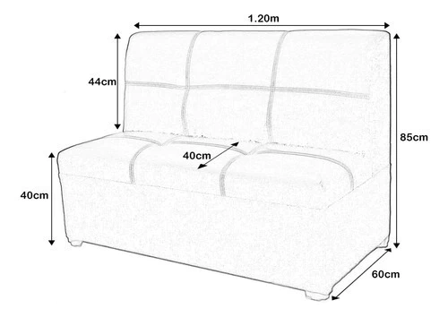 Medidas: - Largo: 1.20 m - Altura de piso a respaldo: 85 cm - Altura de piso a asiento: 40 cm - Altura del respaldo: 44 cm - Profundidad del asiento: 40 cm - Ancho total: 60 cm